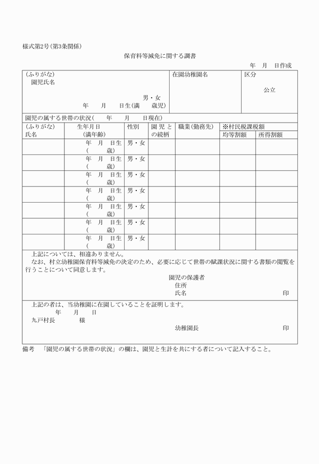○九戸村立幼稚園保育料等減免規則